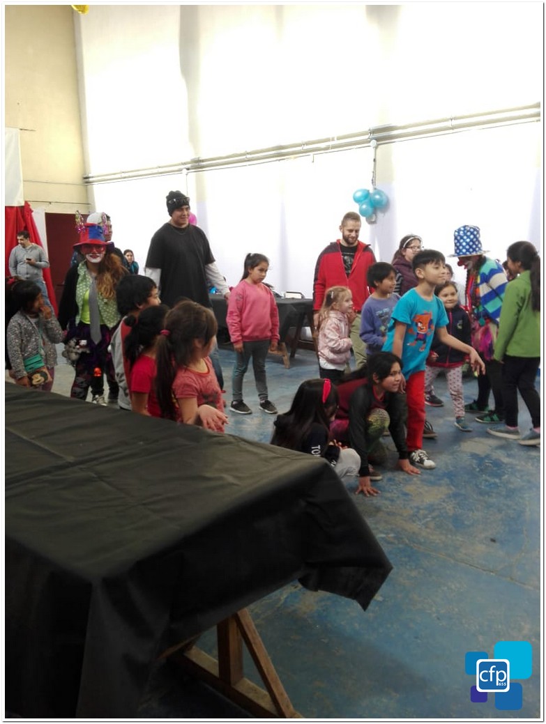 La Instructora y los alumnos del curso de Pastelero agradecen la colaboración de los cursos que aportaron los insumos, la gente que se acercó para el intercambio de tortas fritas por un juguete, y a los alumnos que realizaron la entrega de los juguetes.
