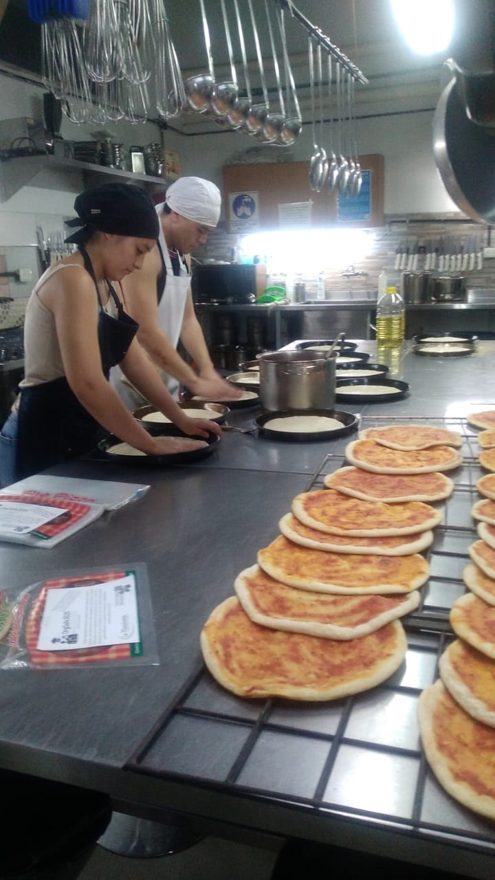 El objetivo de esta Práctica Profesionalizante fue la elaboración de 660 prepizzas, un proceso que puso a prueba la planificación, organización y ejecución de técnicas fundamentales en la panadería. Desde la correcta mise en place hasta la aplicación precisa de fermentación, amasado y horneado, cada estudiante participó activamente en cada etapa del proceso, garantizando la calidad y uniformidad del producto final.